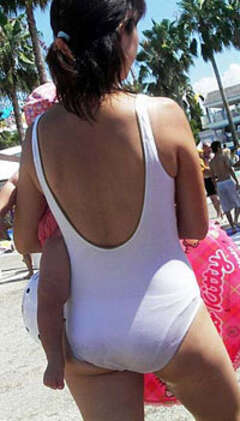 スタイルのいい若妻や出産して肉がたるんだ熟女達の食い込んだビキニのお尻・おっぱいをカメラが狙う!!
