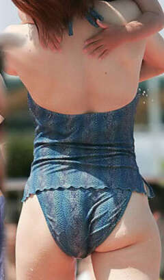 水着がお尻のワレメに食い込んでる